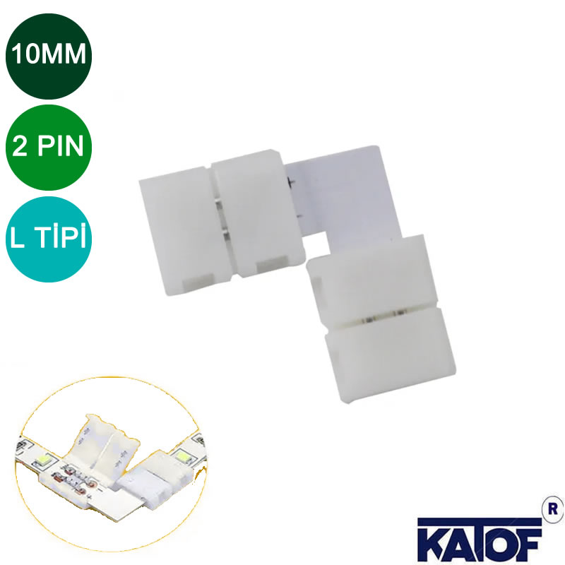 10mm 2pin Tek Renk Şerit Led L Tipi Lehimsiz Montaj Konnektörü