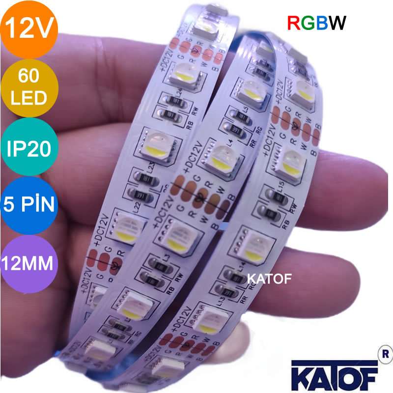 - RGBW şerit ledler 5 pinlidir: