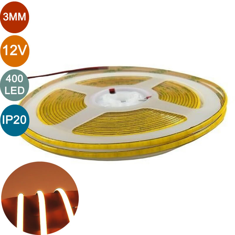 - 12V 3mm COB Şerit Led, yüksek LED yoğunluğu sayesinde noktasız ve homojen ışık sağlayan yeni nesil aydınlatma çözümüdür.