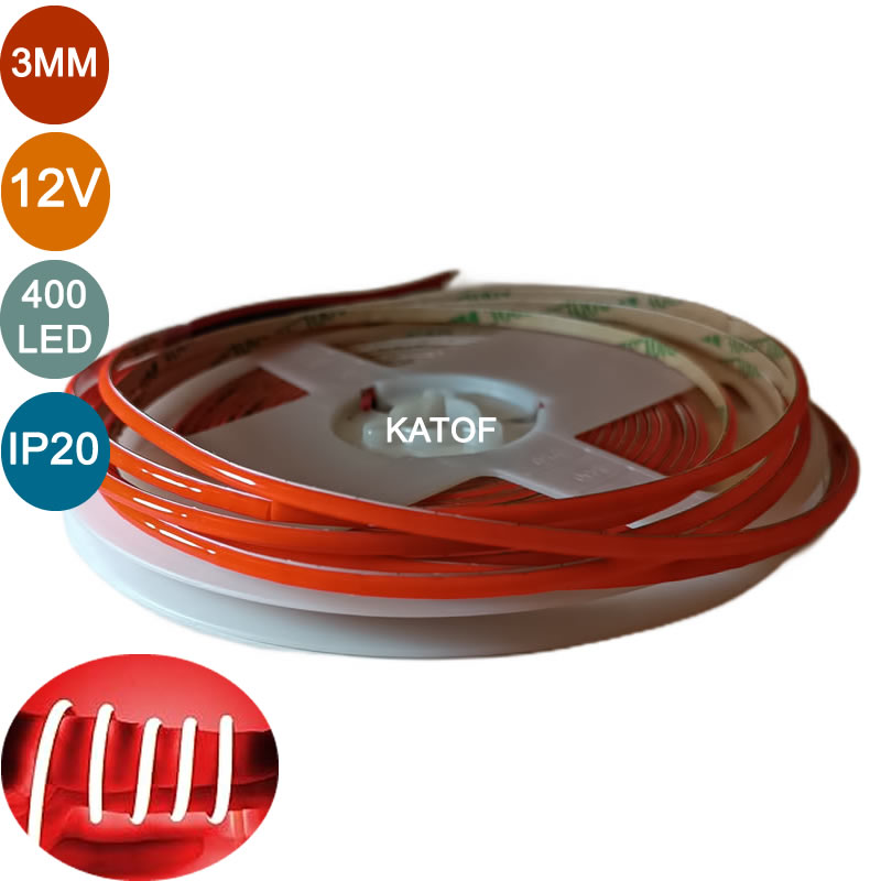 - 12V 3mm COB Şerit Led, yüksek LED yoğunluğu sayesinde noktasız ve homojen ışık sağlayan yeni nesil aydınlatma çözümüdür.