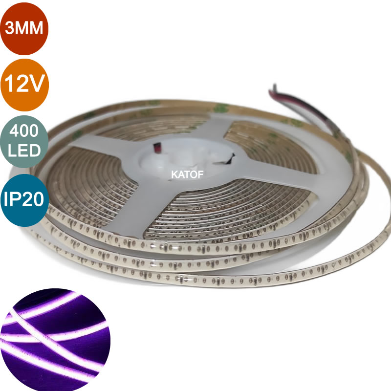 - 12V 3mm COB Şerit Led, yüksek LED yoğunluğu sayesinde noktasız ve homojen ışık sağlayan yeni nesil aydınlatma çözümüdür.