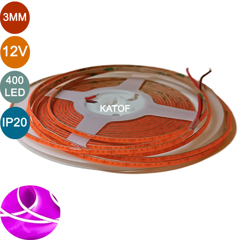 - 12V 3mm COB Şerit Led, yüksek LED yoğunluğu sayesinde noktasız ve homojen ışık sağlayan yeni nesil aydınlatma çözümüdür.