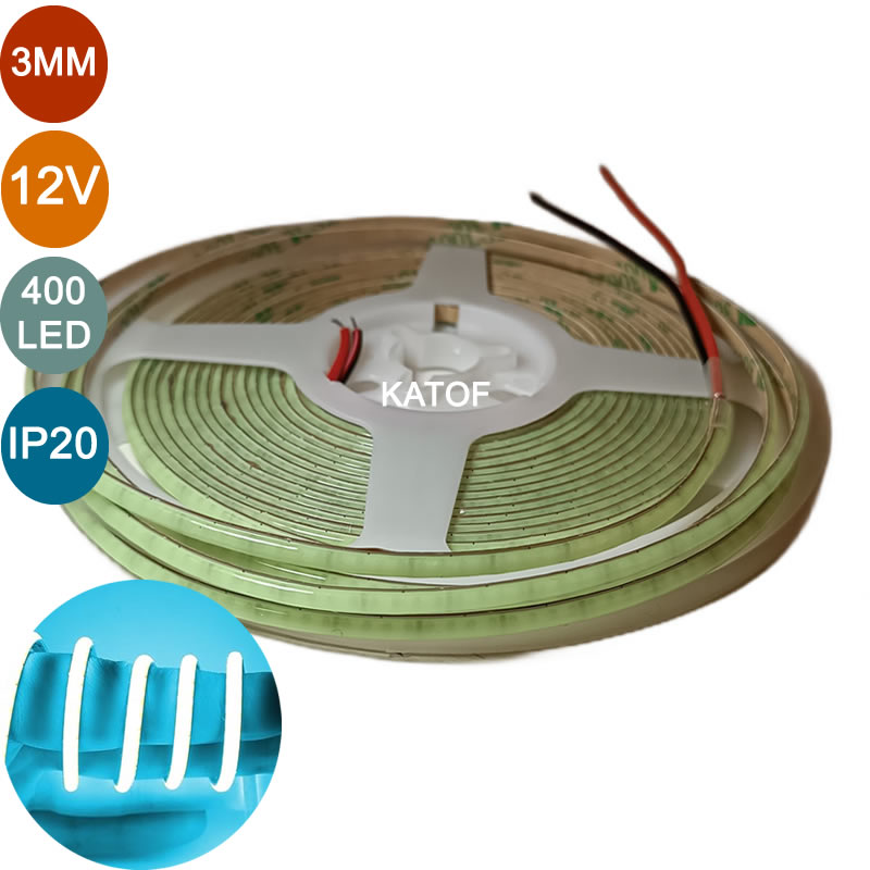 - 12V 3mm COB Şerit Led, yüksek LED yoğunluğu sayesinde noktasız ve homojen ışık sağlayan yeni nesil aydınlatma çözümüdür.