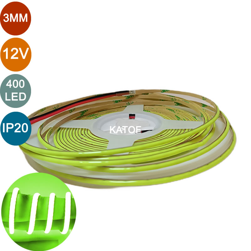 - 12V 3mm COB Şerit Led, yüksek LED yoğunluğu sayesinde noktasız ve homojen ışık sağlayan yeni nesil aydınlatma çözümüdür.