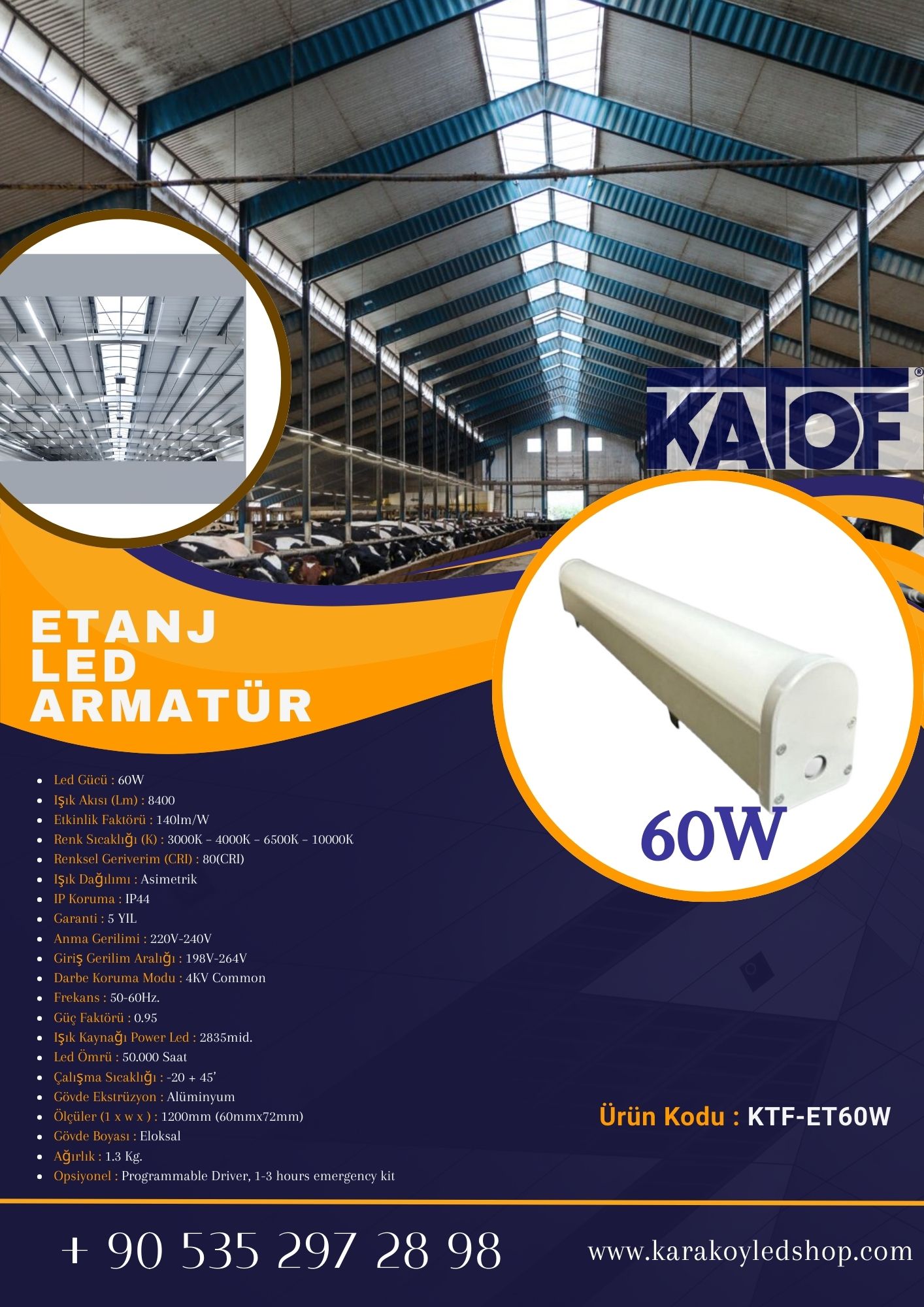 - LED Armatür Gücü : 60W