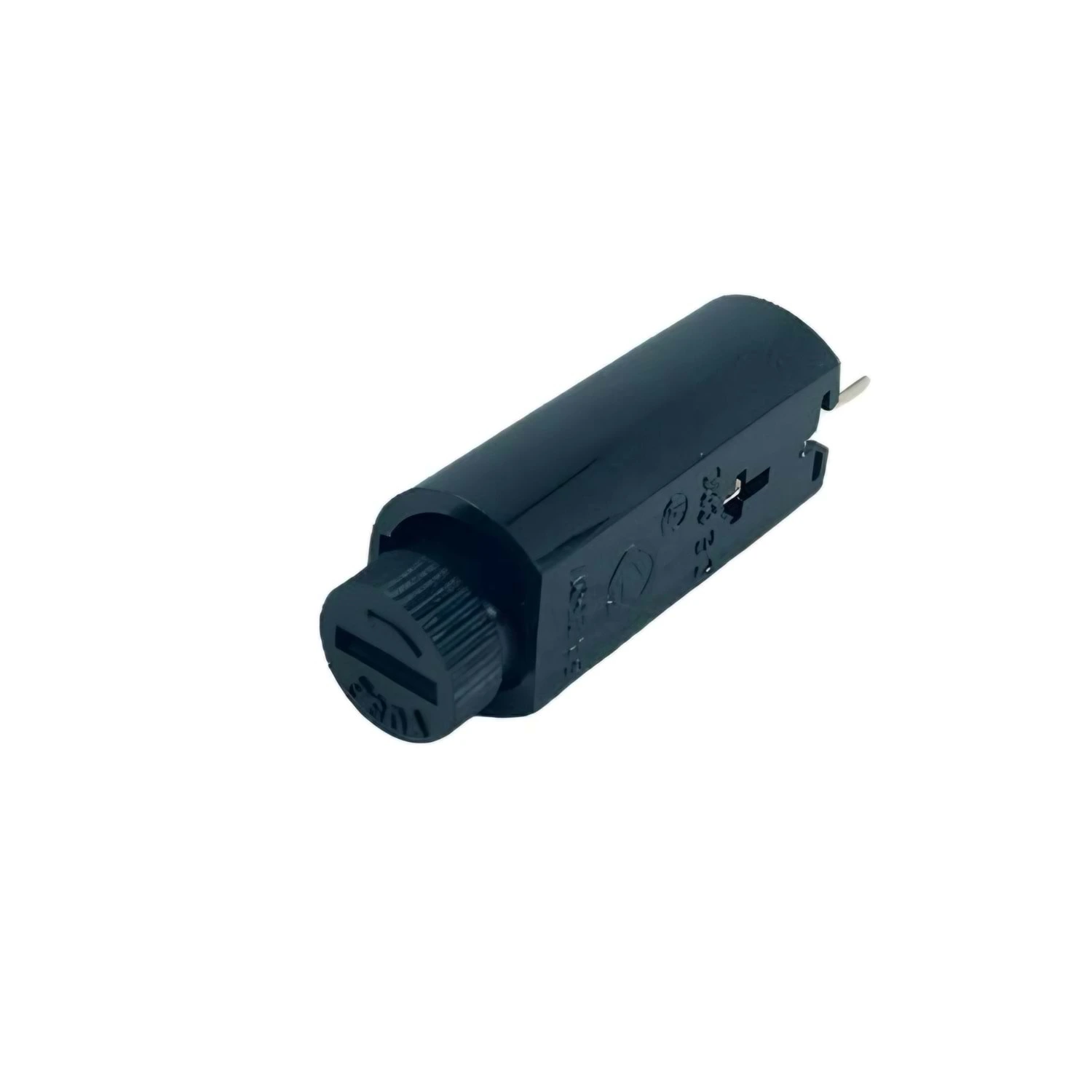 Elektronik devre kartlarında dikey montaj gerektiren uygulamalar için tasarlanmış bu 5×20 mm 180° PCB tipi sigorta yuvası, güvenli sigorta yerleşimi ve pratik değişim imkânı sunar. Standart cam tüp sigortalarla tam uyumlu olup, lehimlenebilir ayakları sayesinde kart üstü montajlar için idealdir.